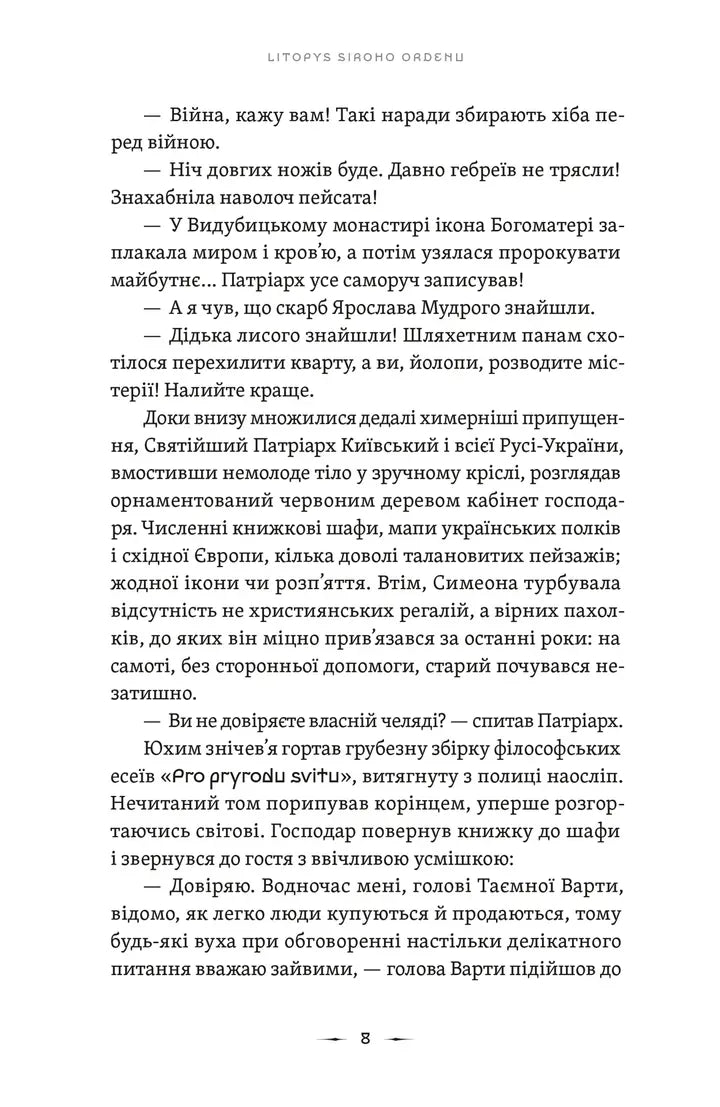Минуло сім років відтоді, як юні характерники обрали вовчу стежку. Протистояння між Північним Альянсом і Двоморським Союзом похитнуло Сірий Орден: хтось загинув, а ті, хто вижили, назавжди опинилися в безжальних тенетах війни.Тим часом в Гетьманаті готуються вибори нового гетьмана, а чутки про нову війну та зовнішнього ворога ширяться дедалі швидше. Попереду у лицарів Сірого Ордену нові випробування, підступи й зради, кохання та боротьба за долю держави. Але вони до останнього стоятимуть на варті лицарського обов’язку та захисті найдорожчих своєму серцю — людей, ордену та державності.