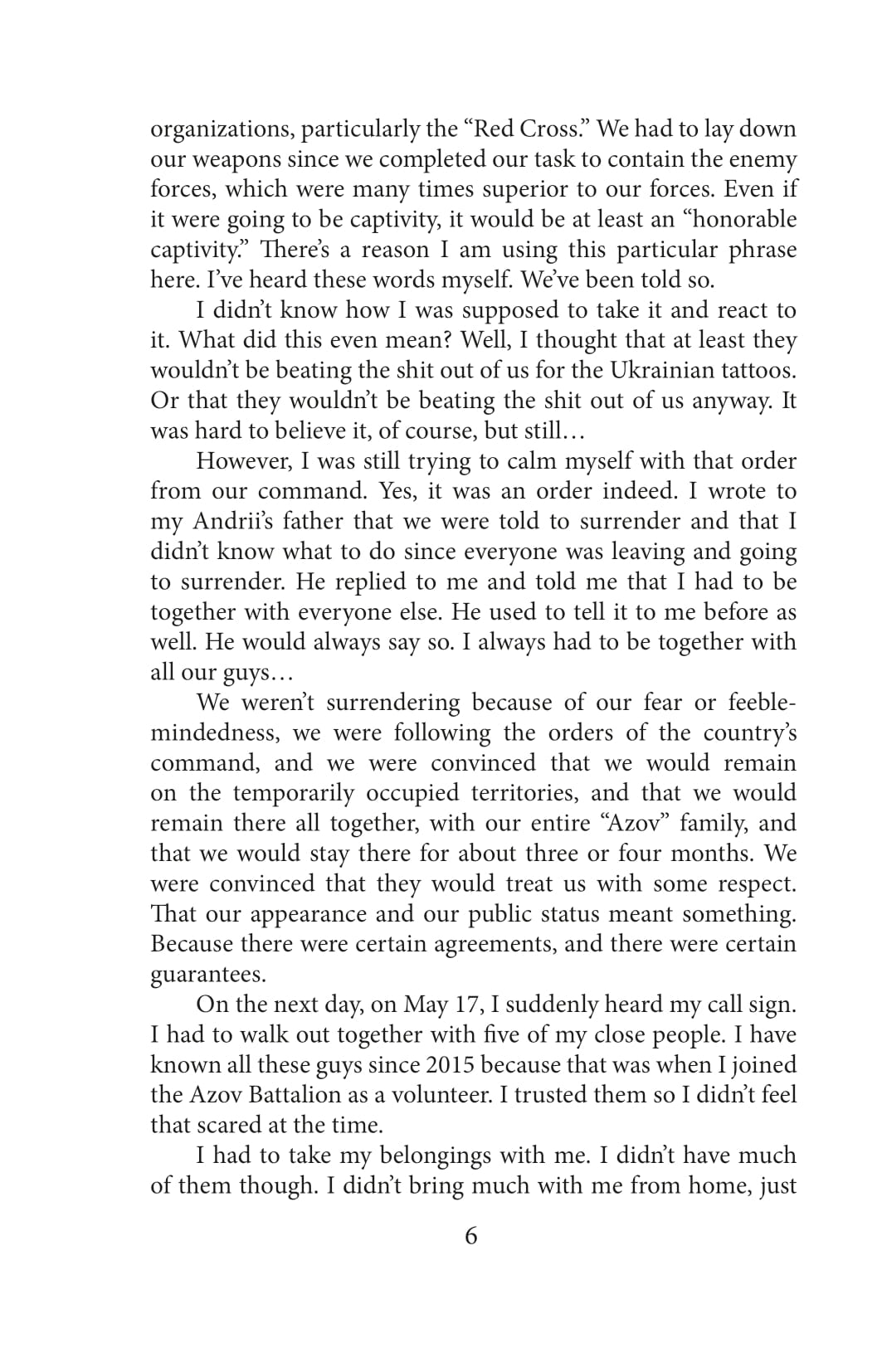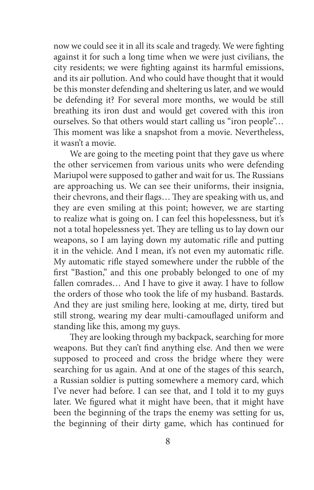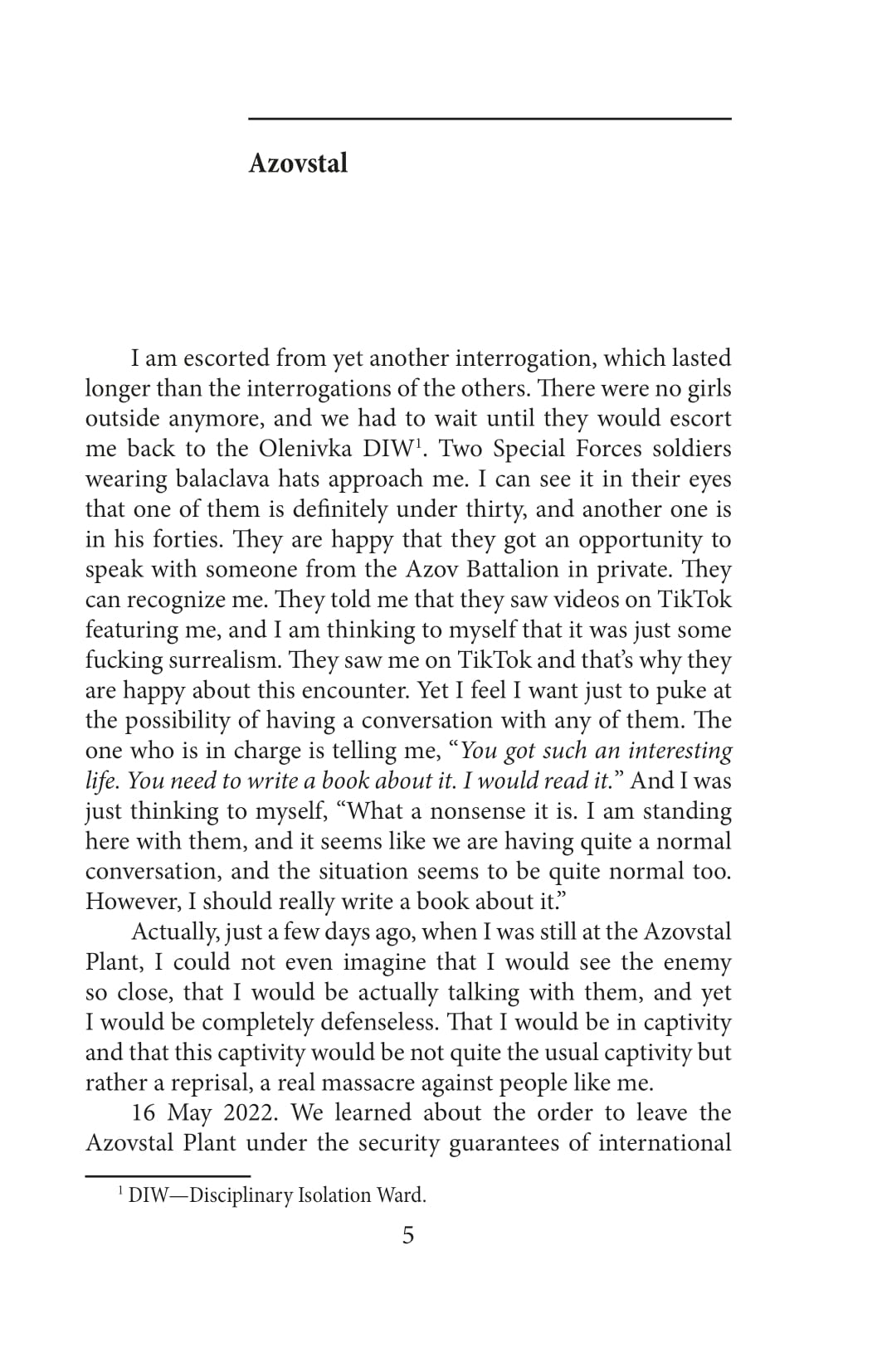For 86 days, the Ukrainian military held defenses in the surrounded Mariupol and on the territory of the Azovstal plant. In order to preserve the lives of the soldiers and save the wounded, the defenders—by order of the higher military command—stopped standing on the defensive, left the territory of the plant and were to surrender to the so-called honorable captivity in the presence of international organizations and observers, with the condition of exchange within 3-4 months. Valeriya Nava Subotina was part of the press service of the Azov regiment. She was enforced to stay in captivity—first in Olenivka, then in Taganrog prison—for over 11 months. In this book, Valeriya described all the circles of hell that she went through for almost a year. Constant surveillance, control, humiliation, inhumane conditions of detention, critical shortage of food and water, attempts of the enemy to break her physically and morally, subjugate her, intimidate her, and push her to treason—Valeriya had to experience all these. Interrogations and torture were exhausting. The impossibility of getting in touch with friends and relatives, misinformation and enemy propaganda would take away the last hope for exchange and freedom. Nevertheless, captivity did not break the intrepid woman; now she is a witness to the crimes of the Russian Federation.