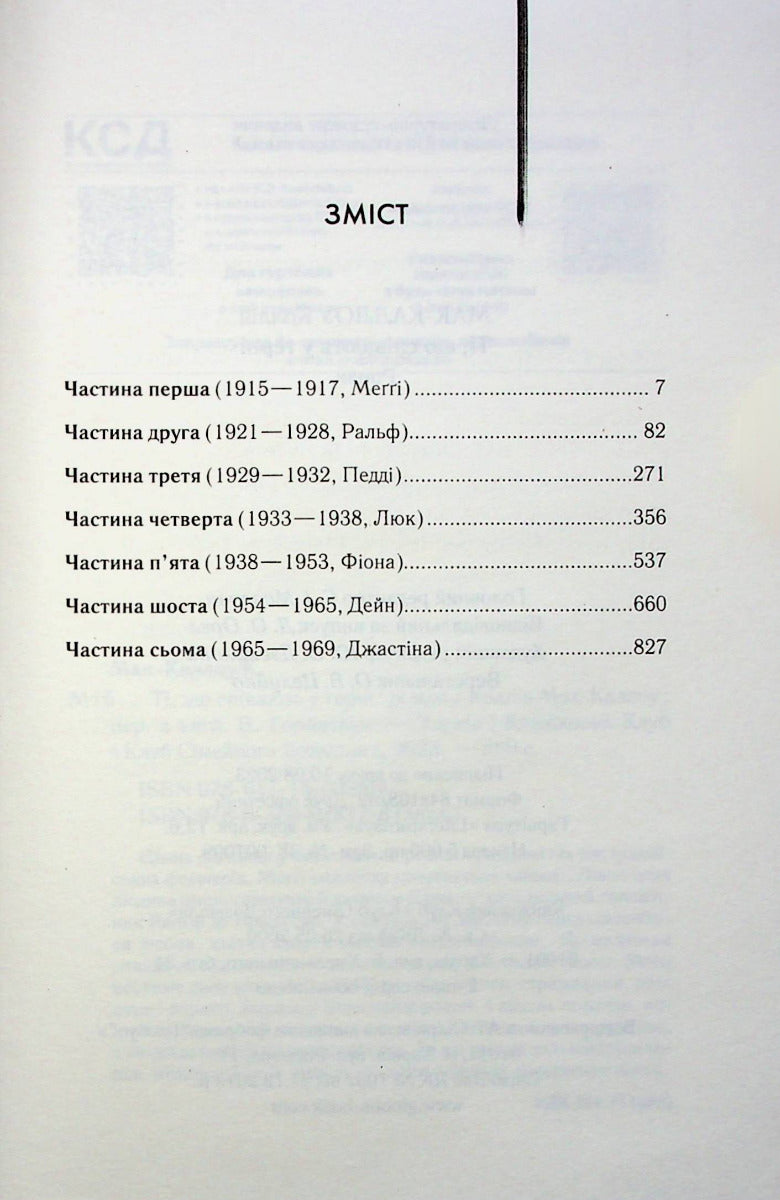 Бестселер «Ті, що співають у терні» австралійської письменниці Коллін Мак-Каллоу — справжня перлина світової романтичної прози. Сумарний наклад книжки — 10 млн примірників, а серіал за мотивами цього роману вже кілька десятків років посідає друге місце у рейтингу найпопулярніших кінотворів усіх часів та народів. Коли ж на зламі тисячоліть австралійці обирали Національний живий скарб, ним стала велика жінка і велика письменниця Коллін Мак-Каллоу…