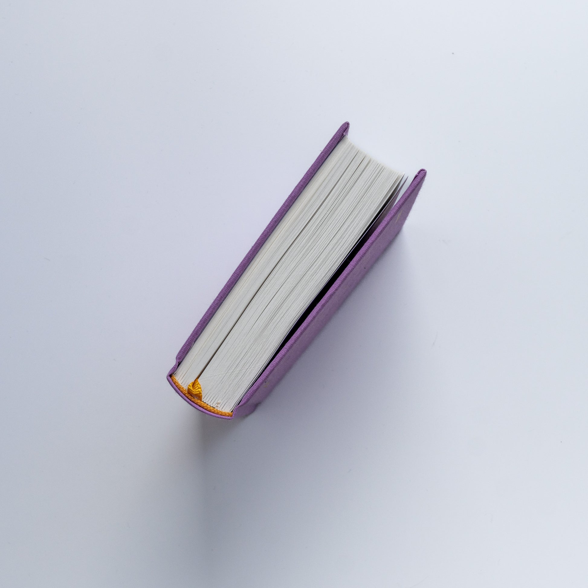 Книга у подарунковій твердій обкладинці під тканину з жовтим шовковим ляссе.