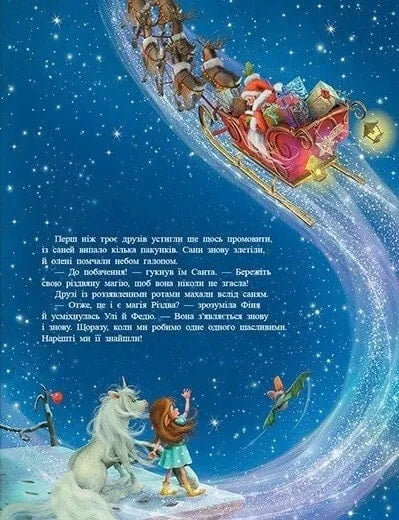 Чарівна зимова пригода маленької одноріжки! Маленька одноріжка Фіня Зіронька, як і всі мешканці Лісу Мрій, уже кілька днів поспіль дуже заклопотана. Ось-ось буде свято! А Фіня обожнює зиму й магію Різдва. Але звідки береться ця магія? Разом зі своїми найкращими друзями — ельфинею Улею й кажанчиком Федем — Фіня вирушає на пошуки відповіді. Вони відвідають мерехтливі печери, великі гори, завітають до фей, відьом, гоблінів, ельфів і навіть тролів. І скрізь відчують магію! Та чи відкриють друзі її секрет?...