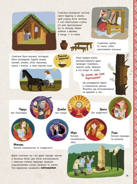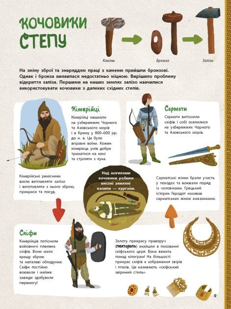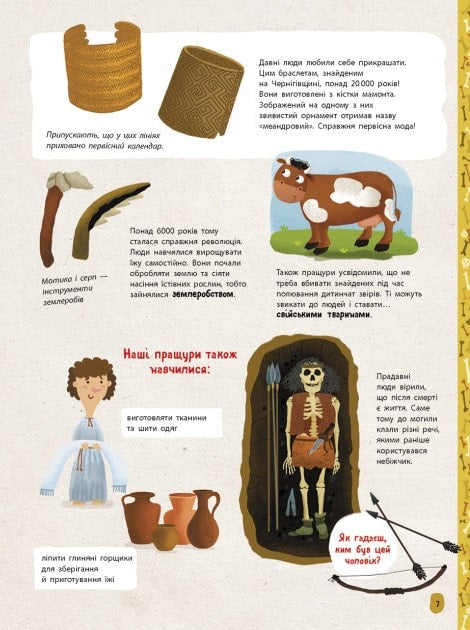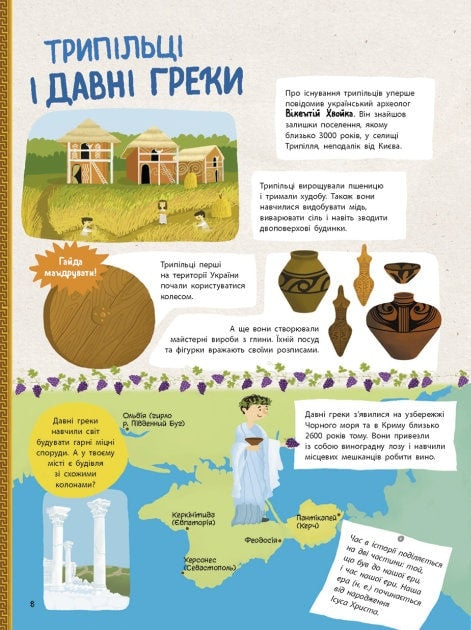 Книжка розкаже про перших людей на українських землях, про поселення давніх слов’ян, про князів, козаків… і так аж до президентів. У цій мандрівці читачі дізнаються про знакові місця, культурну спадщину та досягнення українців у різних галузях. Кожен факт підкріплюють ілюстрації, що оживлюють події і полегшують сприймання інформації.