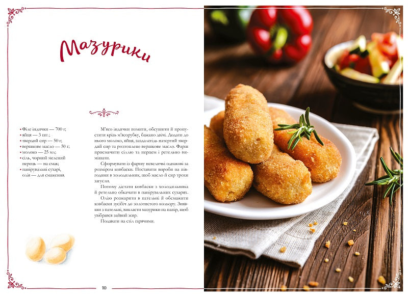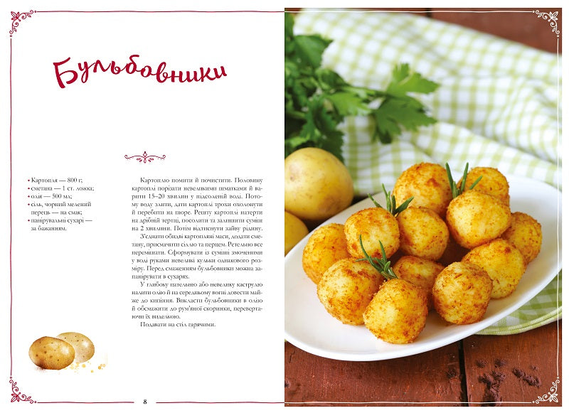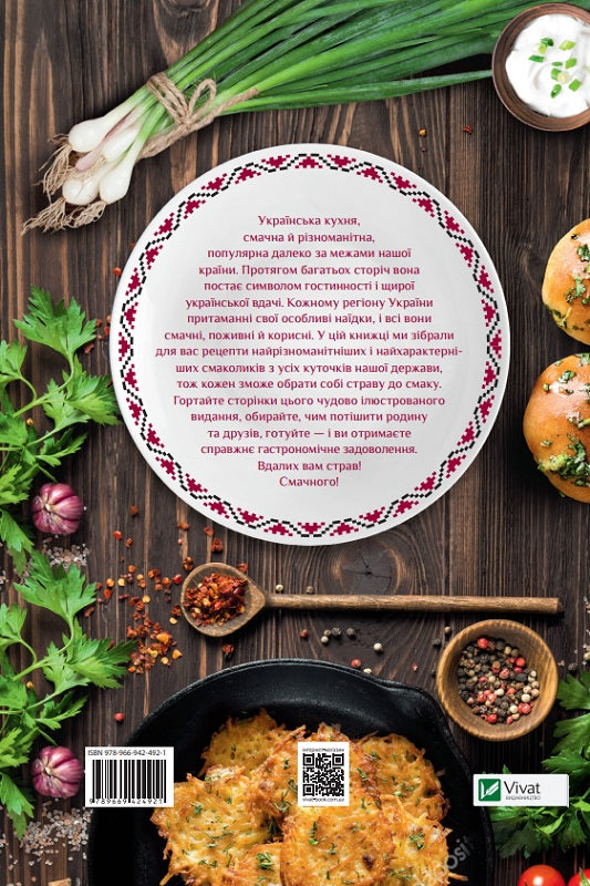 Українська кухня, смачна й різноманітна, популярна далеко за межами нашої країни. Протягом багатьох сторіч вона постає символом гостинності і щирої української вдачі. Кожному регіону України притаманні свої особливі наїдки, і всі вони смачні, поживні й корисні. У цій книжці ми зібрали для вас рецепти найрізноманітніших і найхарактерніших смаколиків з усіх куточків нашої держави, тож кожен зможе обрати собі страву до смаку. Гортайте сторінки цього чудово ілюстрованого видання, обирайте, чим потішити родину та друзів,готуйте — і ви отримаєте справжнє гастрономічне задоволення. Вдалих вам страв! Смачного!