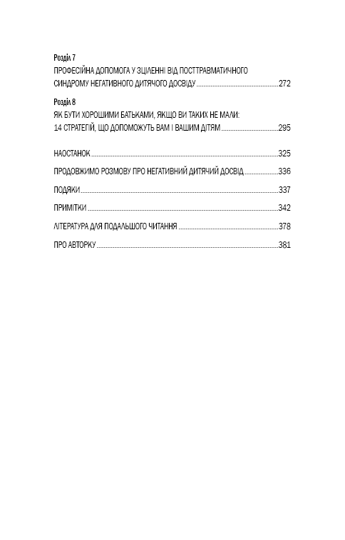 У книзі «Уламки дитячих травм» дослідниця Донна Джексон Наказава зібрала історії людей, яким вдалося знайти цей зв’язок і розірвати його. Авторка докладно розповідає, як впливає на нас «застрягання» в негативному минулому, чому ми не можемо позбавитися від болючих спогадів, чим відрізняється переживання стресу хлопчиками й дівчатками й що саме потрібно зробити, аби змінити ситуацію.