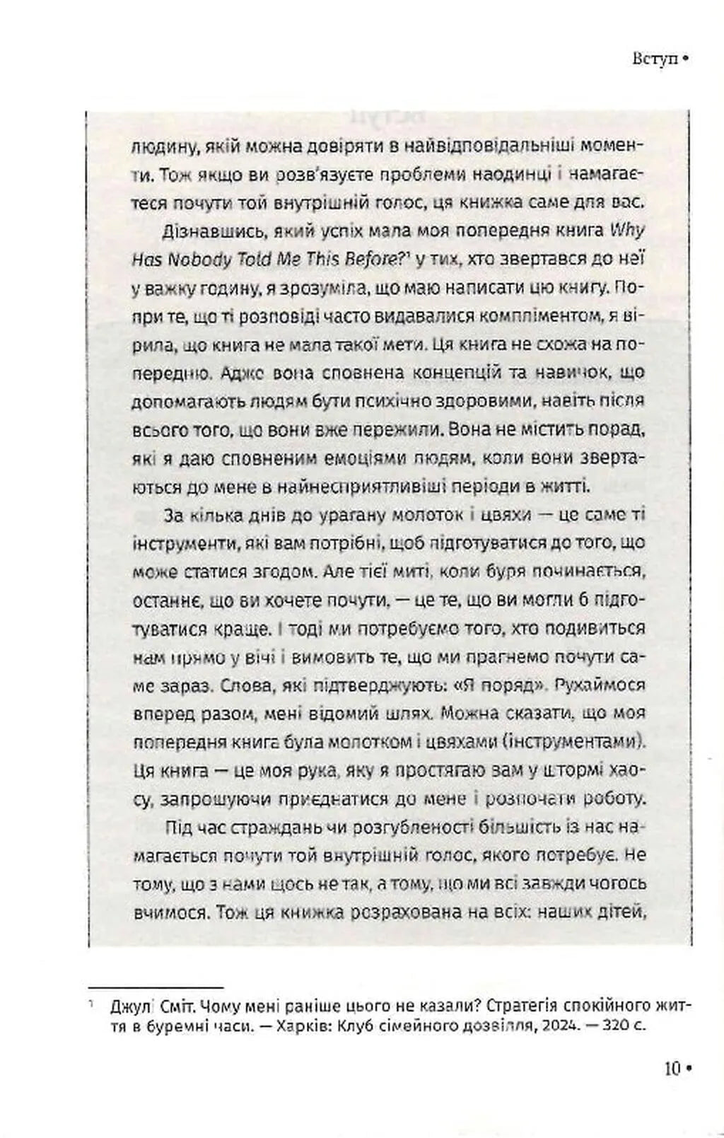 Бестселер The New York TimesВід авторки «Чому мені раніше цього не казали?»Ця книга - ідеальне продовження бестселера Чому мені раніше цього не казали?, що допоміг поступово зміцнити психічне здоров'я тисячам людей. Цього разу авторка говоритиме про ті моменти, коли ви вже опинилися в епіцентрі емоційного шторму.Кожен розділ - це окрема життєва ситуація, знайома майже кожному. У формі стилізованих листів докторка Сміт звертається до читача тоді, коли здається, що все виходить з-під контролю через тривогу, розгубленість і сумніви, а опісля надає практичні поради й техніки, які допоможуть побачити ситуацію під новим кутом, знайти опору й зробити перший крок до спокою.Відкрийте цю книжку, коли... - це голос підтримки, коли ви найбільше її потребуєте, і лагідне нагадування: вихід є.