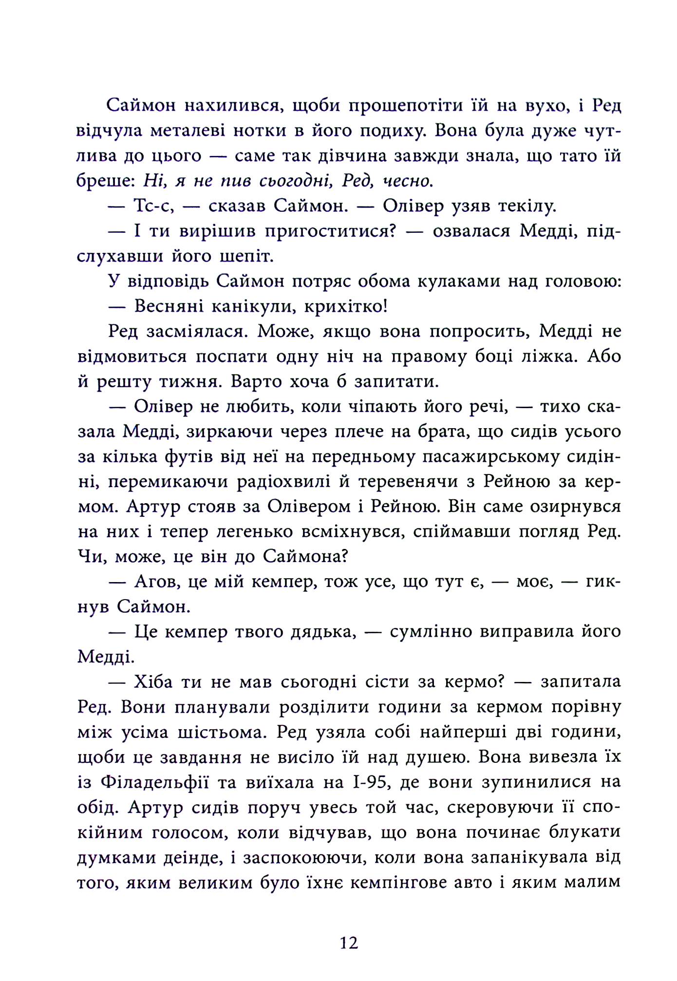 Новий захопливий роман неперевершеної майстрині трилерів! На весняні канікули шестеро друзів вирушають на відпочинок у фургоні, який взяли напрокат. І наче все чудово і весело… хіба що кілька разів випадково звернули не туди… Та коли друзі розуміють, що застрягли десь у глушині без сигналу GPS і мобільного зв’язку, уже не так весело… А коли хтось прострілює їм усі шини та бензобак, стає зрозуміло — це геть не випадковість. Десь назовні в темряві за ними спостерігає убивця. А в когось у цьому фургоні є секрет, що вартує життя…