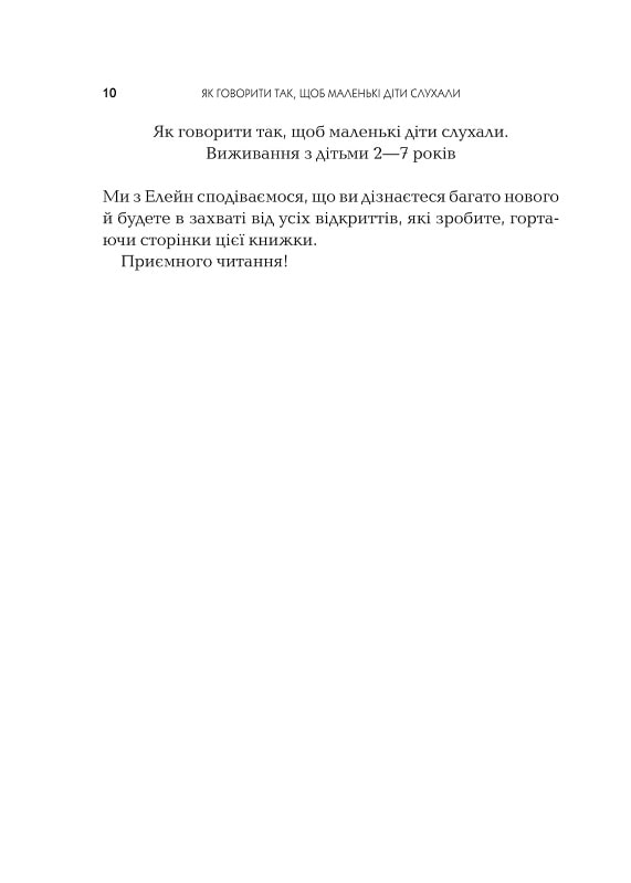Джоанна Файбер і Джулі Кінґ — експертки з виховання — діляться своєю мудрістю, накопиченою протягом багатьох років проведення майстер-класів для батьків, учителів і педіатрів. Завдяки новаторському поєднанню оповідок з робочої практики, батьківських історій та авторських спостережень ви отримаєте конкретні інструменти й поради. Вони змінять ваші стосунки з дітьми й навчать говорити так, що малеча слухатиме вас із зацікавленістю та щирим інтересом.