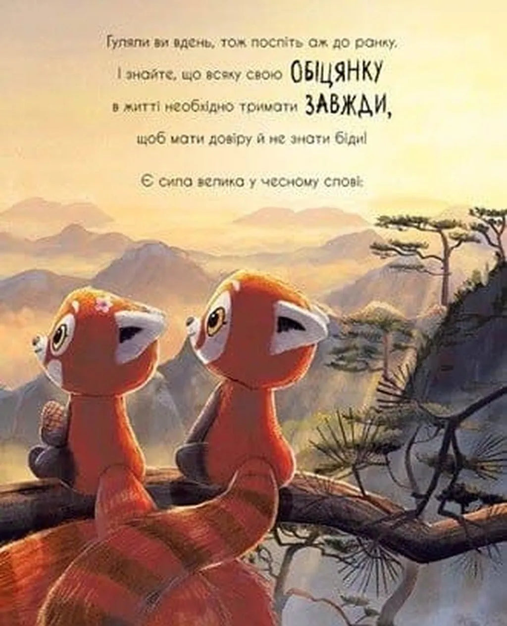 Високо в горах дві маленькі руді панди Понó і Кетý живуть у безпечному світі в мами під боком. Сестрички дають мамі слово не йти далеко від домівки і завжди дбати одна про одну. Але вони ростуть, і допитливість Кету теж. Одного дня вона порушує своє слово й вирушає дізнатися, що ж там по інший бік ущелини. І перед Поно постає важкий вибір…Красива пригодницька історія про любов до рідних, обіцянки та вірність слову — від неперевершених Рейчел Брайт і Джима Філда.