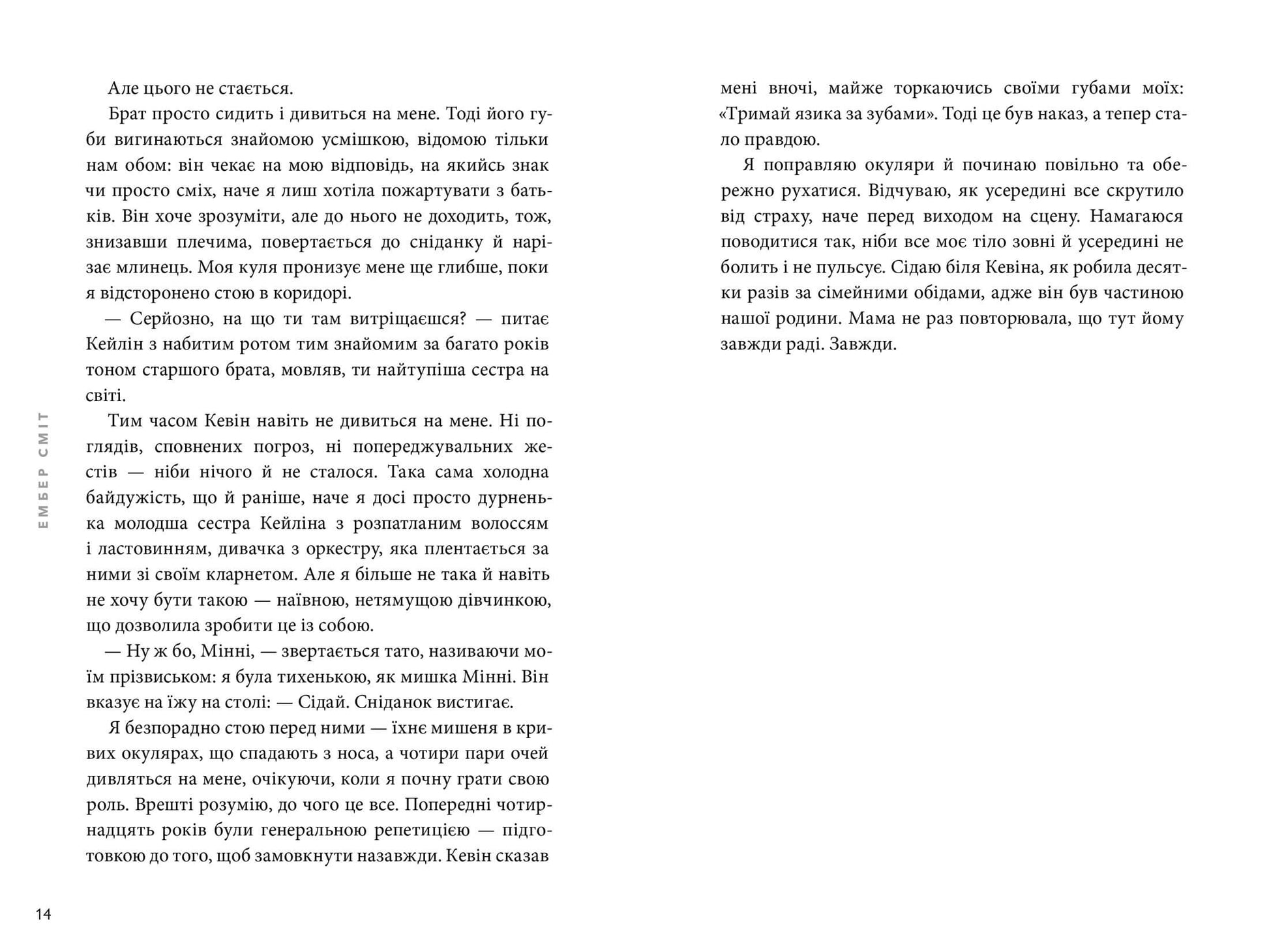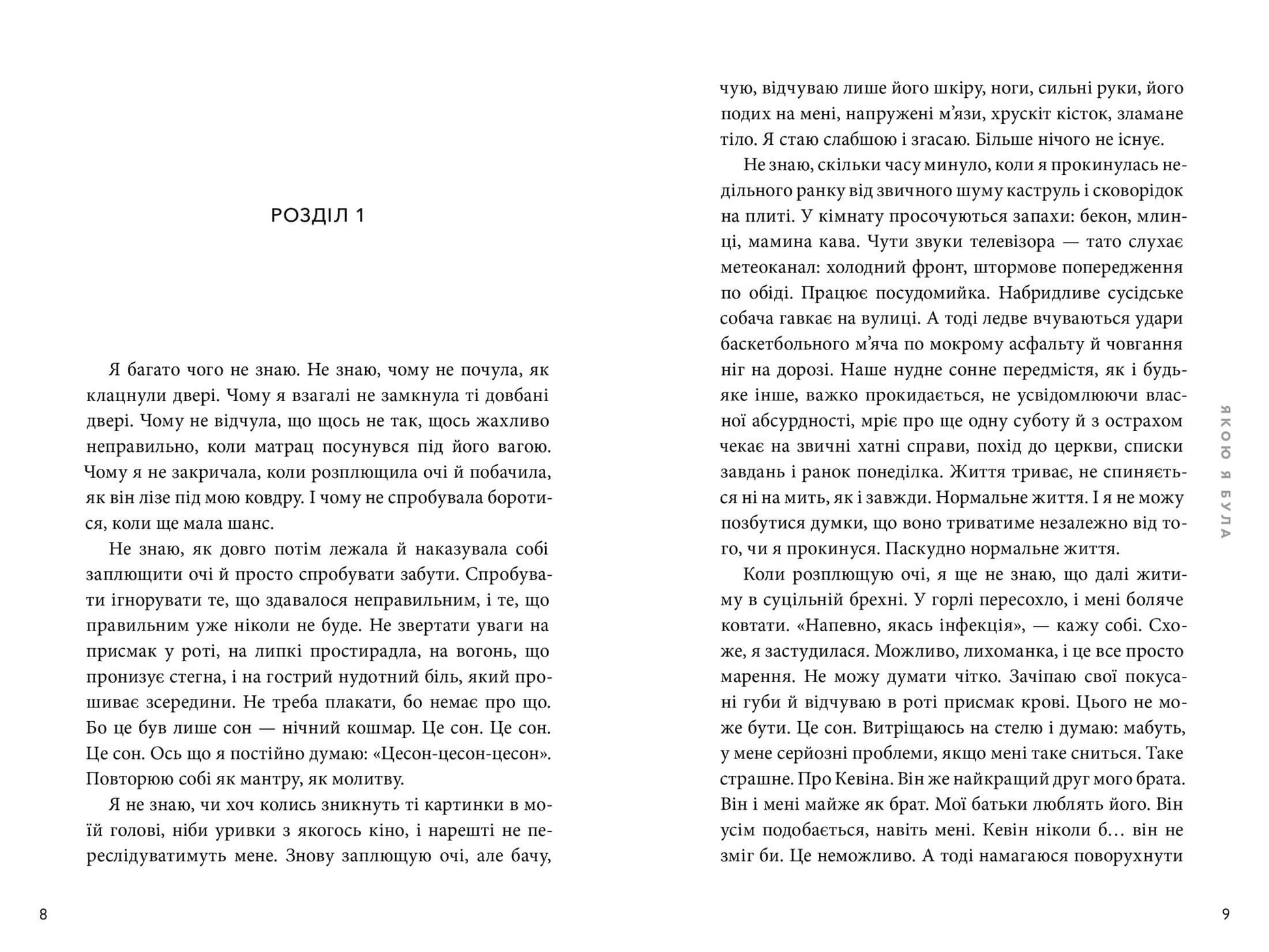 Провокативний янґедалт-дебют про травму й дорослішання. Іден хотіла би відмотати час назад і прожити той день знову. Тоді вона б усе зробила інакше: не реагувала би на його жарти, не ігнорувала би дивних поглядів. І точно замкнула би двері. Але часу не повернеш. Тож Іден ховає правду, а з нею і себе, якою була колись. Вона вдає, що їй не потрібні дружба, любов, справедливість. Та коли її світ розвалюється, Іден врешті розуміє: її може врятувати тільки вона сама. Увага! Книжка містить сцени сексуального насильства, вживання алкоголю та наркотичних речовин.