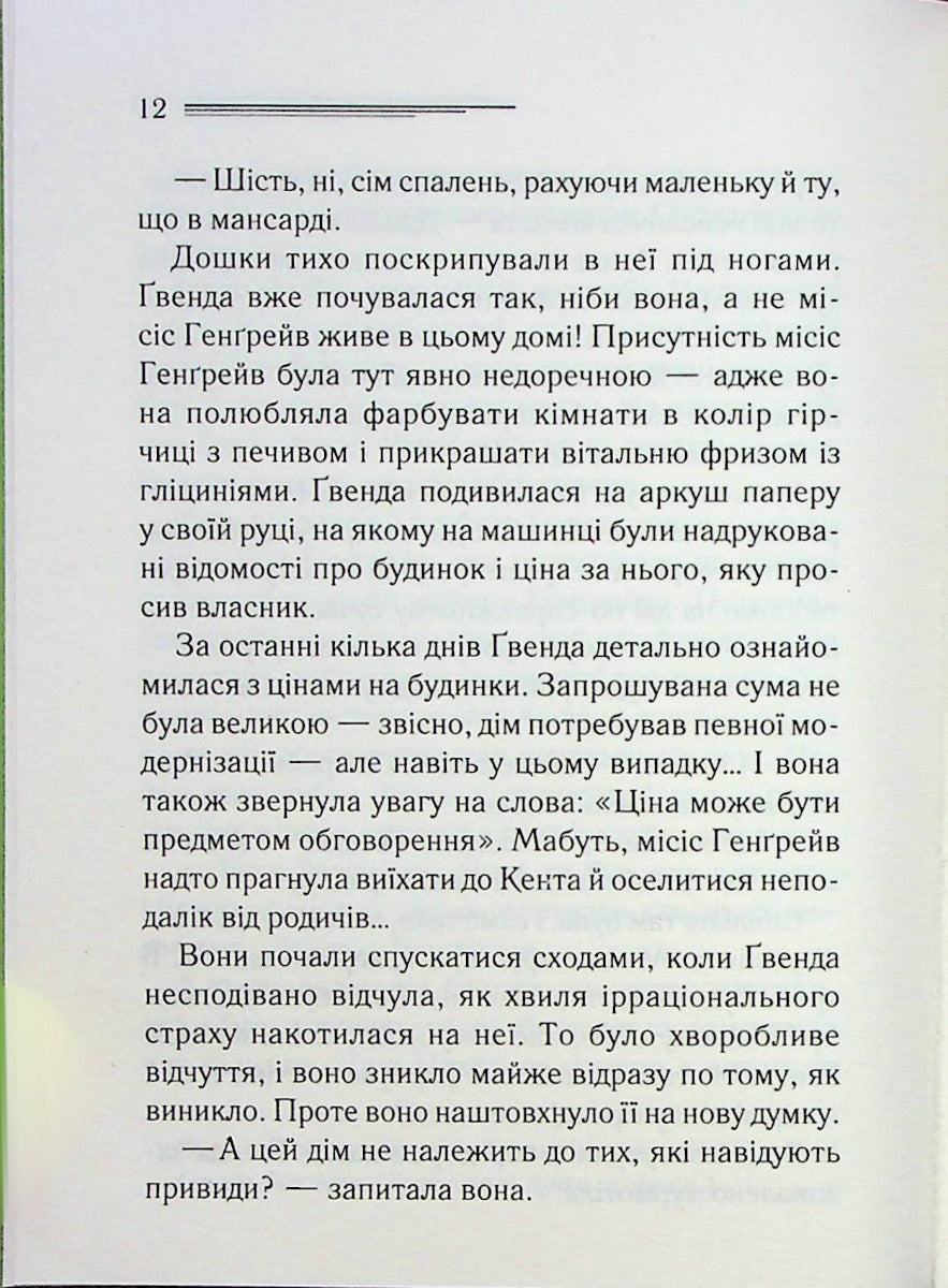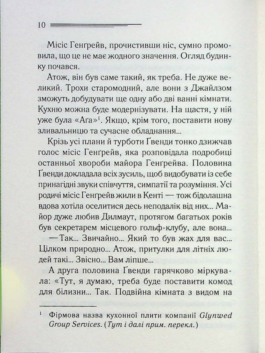 Ґвенда була дуже щаслива, коли вони з чоловіком придбали чудовий будиночок у курортному містечку. Такий тихий, затишний і вже рідний. Однак дивні спогади спливають у пам’яті, коли вона ходить своєю оселею, чує скрип сходів. Її охоплює пекельний жах, бо ось там, на підлозі, вона бачила тіло жінки і руки, що її душили! Невже Ґвенда божеволіє? Міс Марпл впевнена, що дівчина не безумна і колись у цьому будинку справді сталося вбивство. Вона радить молодятам не копирсатись у минулому й не накликати на себе небезпеку. Але ж хіба її послухали?..