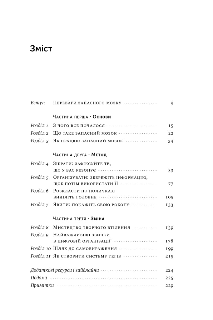 Автор не тільки пропонує концепцію, а й показує, як завдяки їй буквально змінити життя. Із цієї книжки ви довідаєтеся про метод ЗОРЯ, систему ПАРА, урок від Річарда Фейнмана, 12 практичних кроків, щоб запустити запасний мозок, звички цифрової організації тощо. Тьяґо Форте та його метод оптимізували процеси в багатьох компаніях, допомогли розподіляти власні ресурси й полегшили життя тисяч людей.